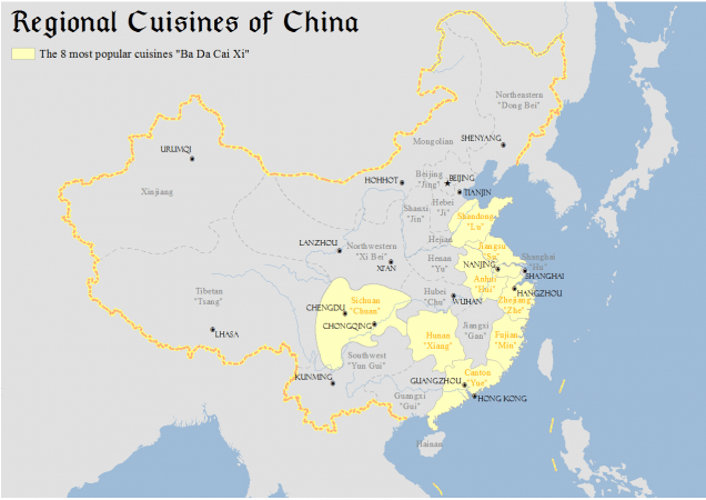 În China există opt bucătării regionale importante, fiecare cu caracteristici speciale. Bucătăria din regiunea Shanghai, care ne inspiră la restaurantul nostru, se mai numește ”Hu”.